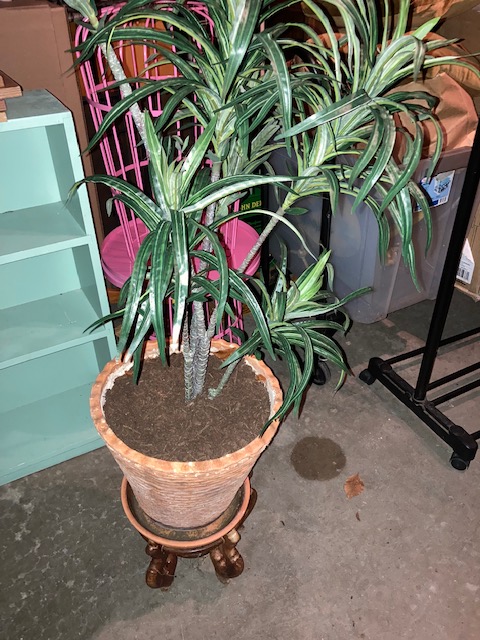 I love this fake tree and would love to dress it up with twinkle lights as I have my other large fake plants, but I just have no room for it. It comes with a clay pot and the little wood stand you can see under it.