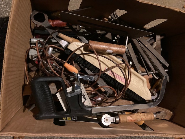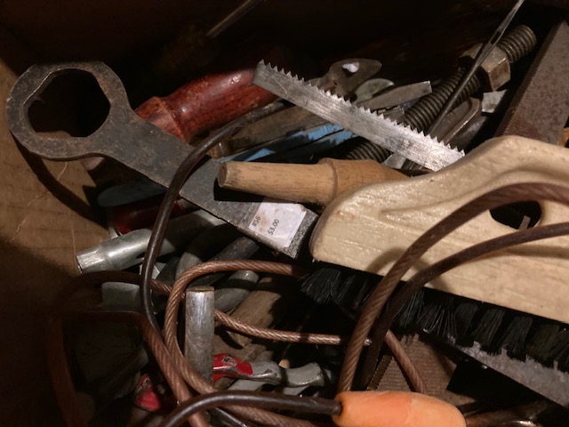 I really don’t know anything about what’s in this box other than it contains files, a wrench or two, a hammer and an assorted lot of other stuff that you can see in the photos. I’m sure it’s all worth a lot more than the price I have on it, but it’s easier for me to just post it all in one lot, and sell it, rather than have it taking up space in the garage.