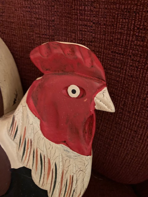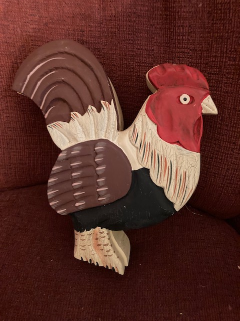 Well, this wooden rooster box certainly is a bit rustic and country looking, and he’s also awfully cute!