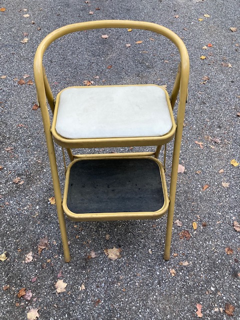 Dimensions: Standard size for this stool, which was in most homes when I was younger! It’s 21 inches deep (from front legs to back legs),12 inches to the first step, and about 30″ high overall,