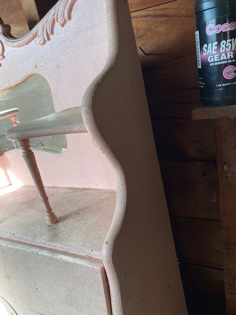 This is a wonderful antique desk with lots of detail in pale pink.