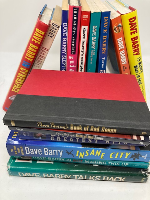 Over a dozen of comedian Dave Barry’s hardcover and trade paperback books.