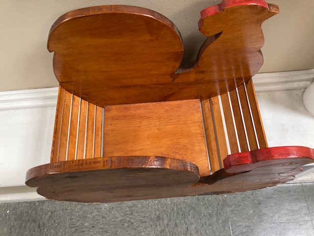 I don’t know if it was supposed to be a magazine rack as the auction house called it, or if perhaps it was more likely used as a catchall for old newspapers before they got thrown into the woodstove. That would have been my guess.