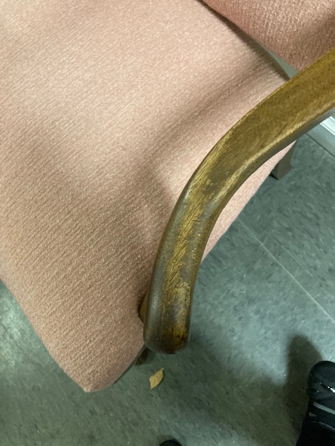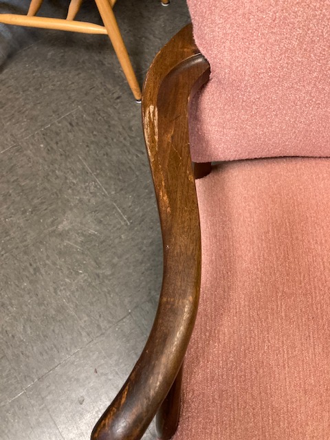 Condition: It’s in very good, clean, condition. The arms are a bit worn as shown in the photos below, but it’s sturdy with no rips, tears or stains noted.