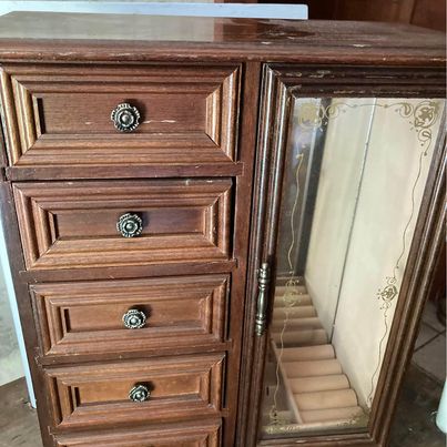 This nice wood jewelry box can help keep you organized in a fairly small space!