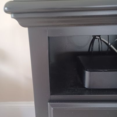 Features dovetailed drawers.
