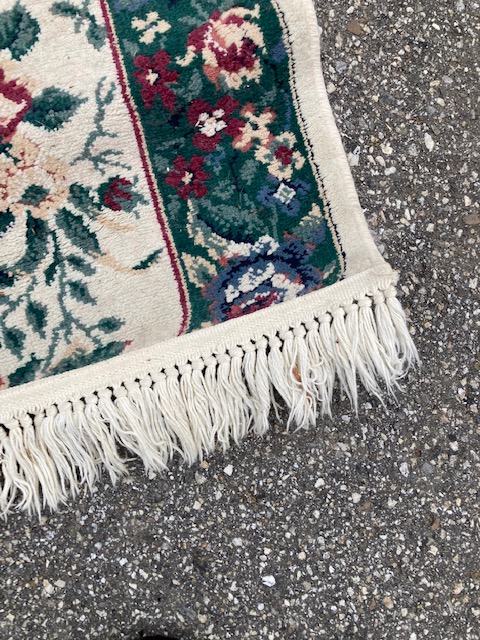 Condition: The runner is in very good condition. The fringe is intact on both ends. The reverse does show some spots that were likely picked up from the floor it was placed on; it doesn’t appear to have any actual stains though; not now or previously.