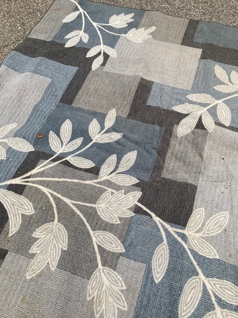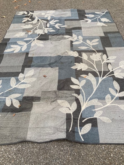I had this carpet in the waiting room of my office suite where it looked fabulous, and received lots of positive comments – it is quite striking in person! (BTW, I placed this in the driveway to take the photos; you’ll see a couple of fall leaves made their way into my pictures!)