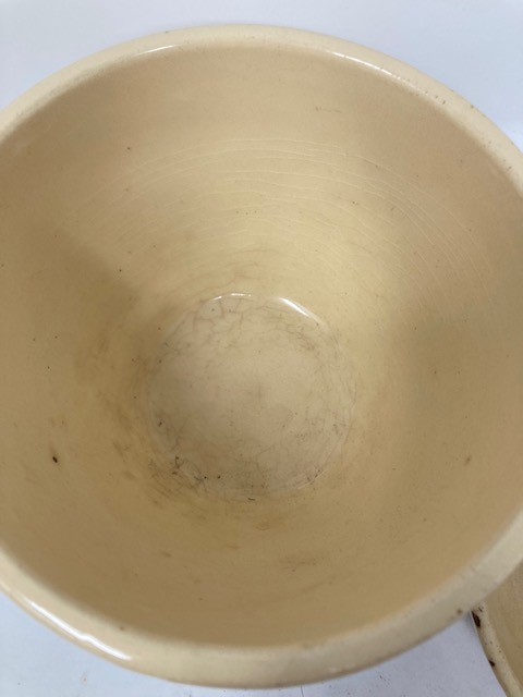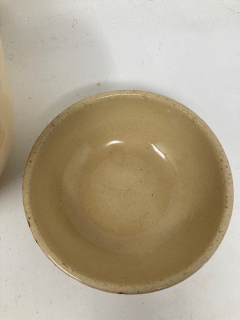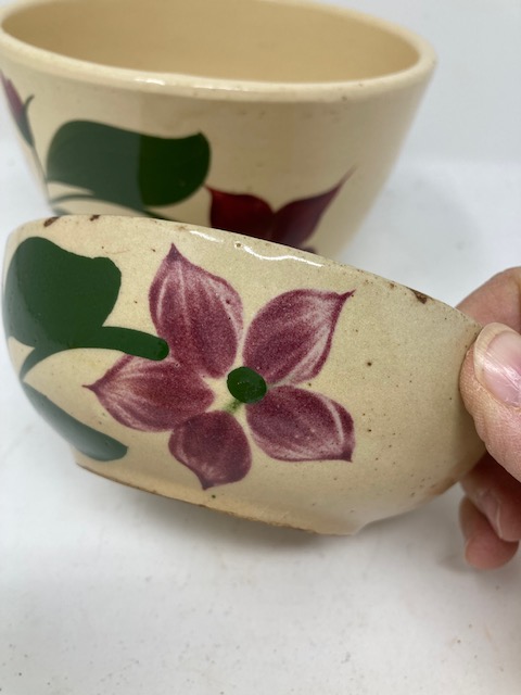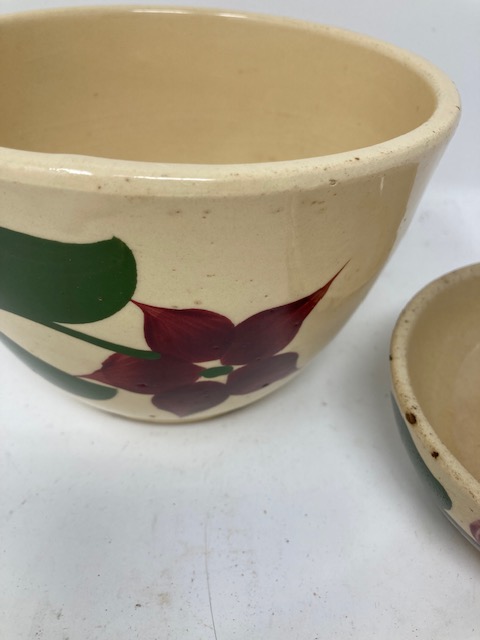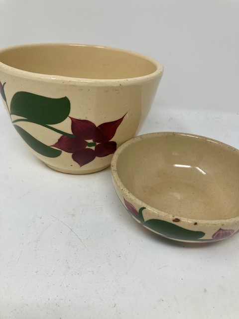 Condition: Good. As expected for vintage pieces of used pottery. There are some minor chips around the top of the small mixing bowl, and other blemishes here and there.