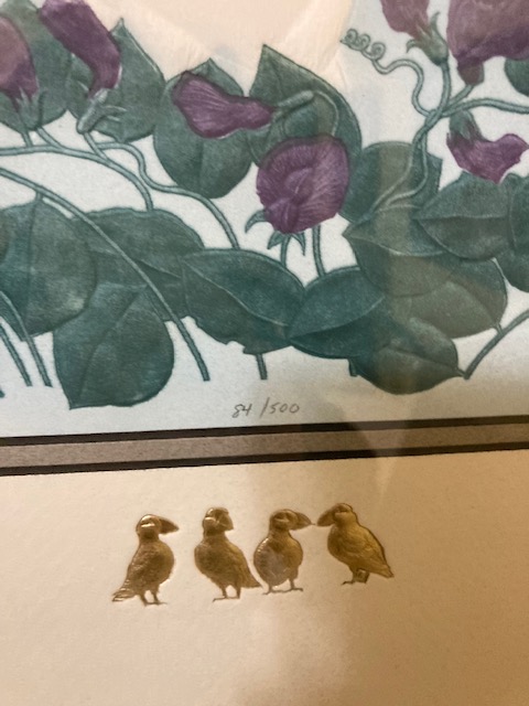 The “Puffins” print is numbered 84/500. I’m unable to read the signature on this one as well.