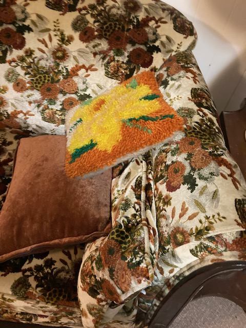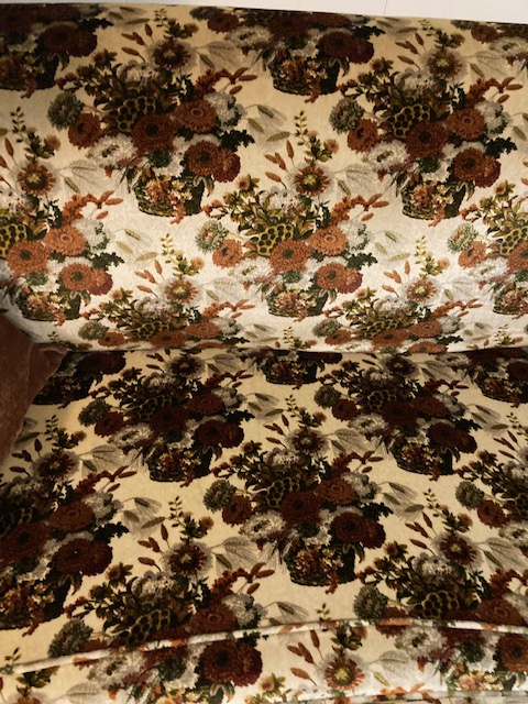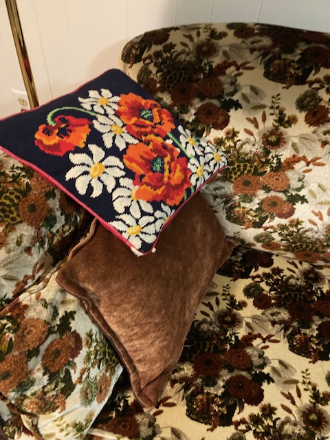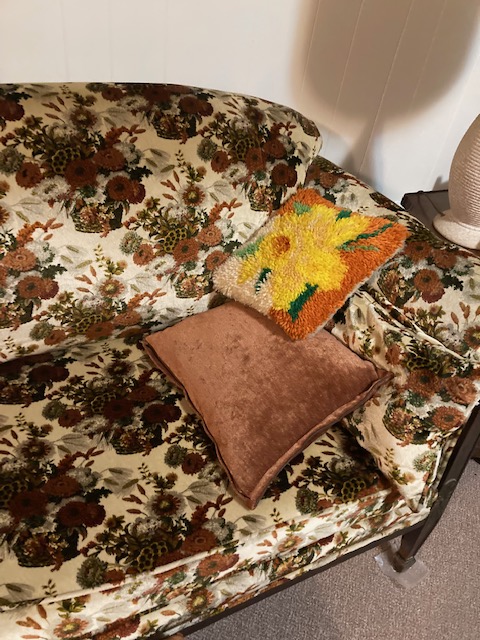 This great old couch is located in the family room of a very clean, organized home of an elderly couple. I didn’t check to see what the brand name is under the cushions. Will do so soon!