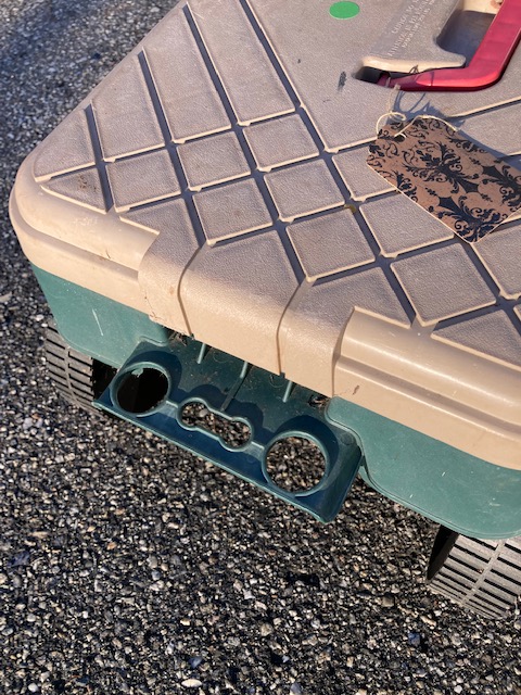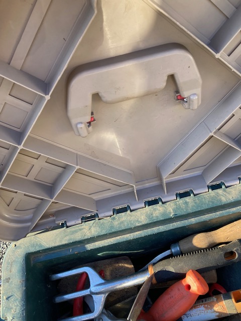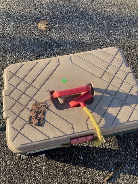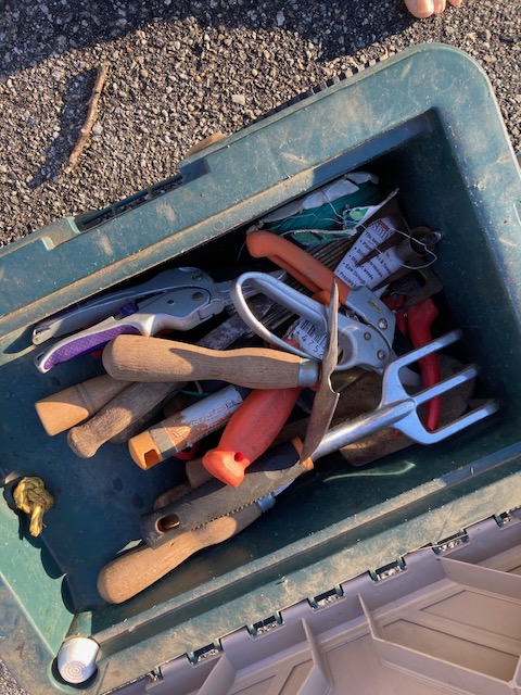 Condition: Very good. It’s been used but other than the frayed pull rope, has stood the test of time! The tools are all in good shape, although some have a bit of dirt remaining on them.