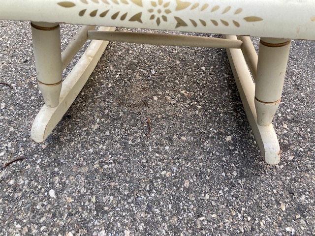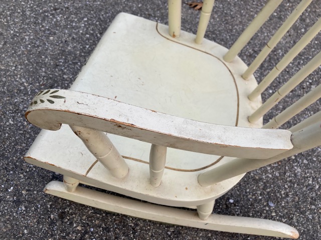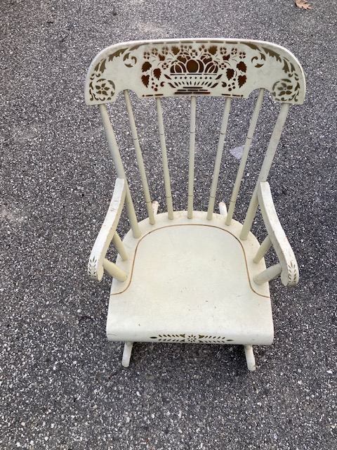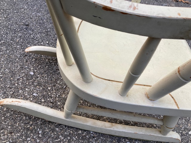 Overall, the height is 27″ and the depth to the back of the seat is 14 1/4 inches, which does not include the rockers.