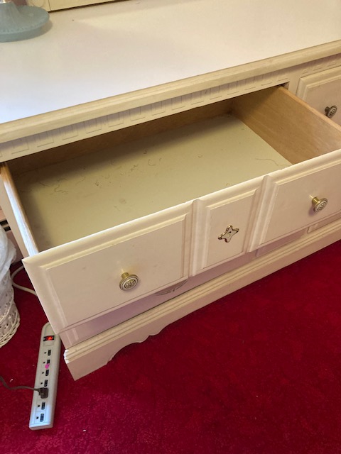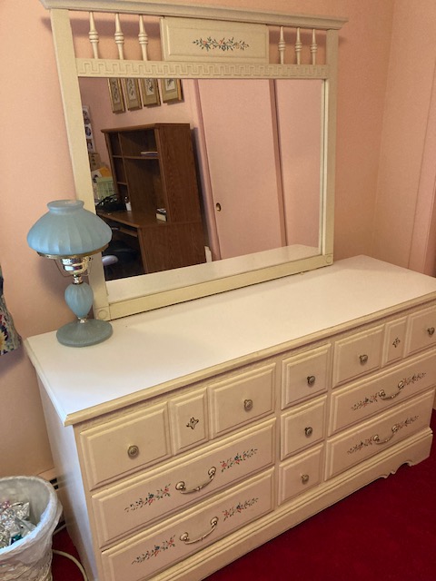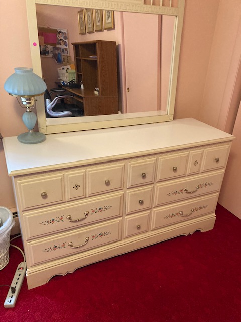 … a 9 drawer white dresser with mirror and lamp ($165)