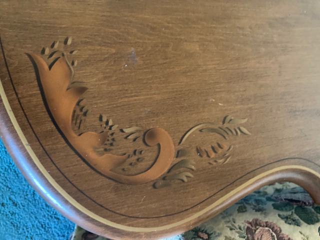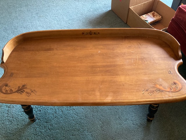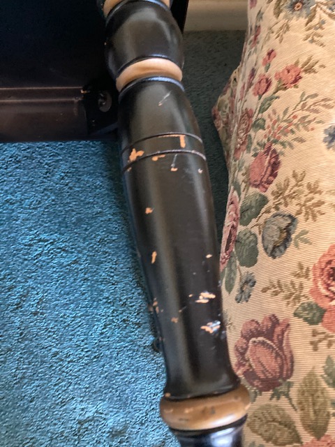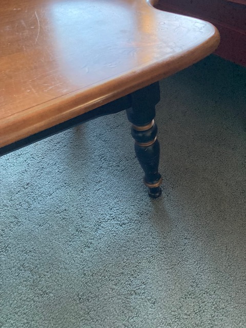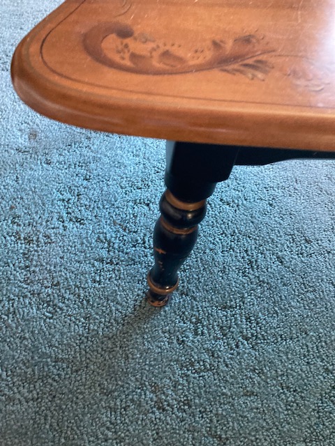 Condition: Other than the legs showing signs of some chipping paint, the set is in near perfect condition. It does look like the coffee table sustained some water stains, as the photos show.