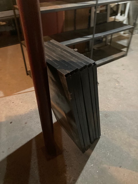 We’ve taken these apart because they were put together in a basement and were too big to go back out through the bulkhead door. But that’s good for you because they’re a whole lot easier to transport this way!