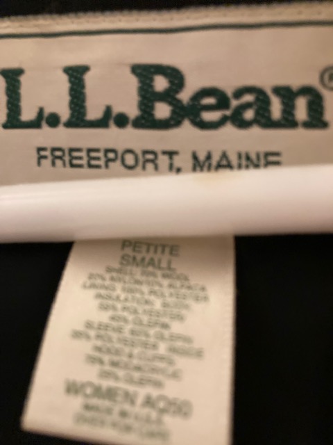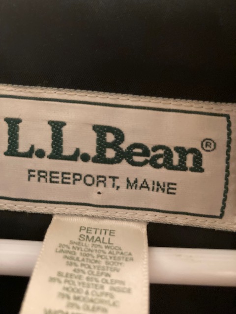 This is a wonderful, classic style LL Bean full-length coat with faux fur cuffs & hood. Perfect for our Maine weather! (My photos unfortunately don’t do it justice.)