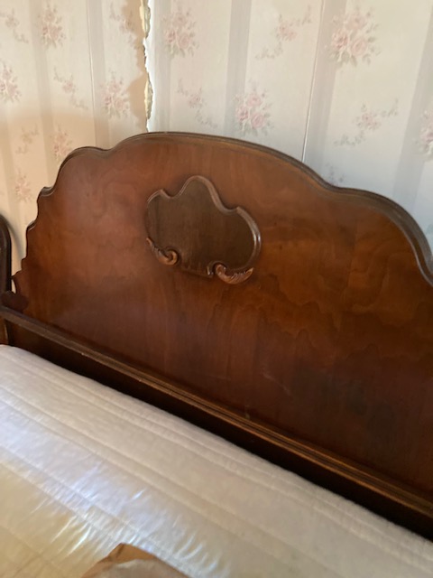 This is a beautiful antique bed with carved headboard that belonged to an elderly couple, who have been unable to live in their home, so everything is being sold. The bed comes complete with mattress and all rails.