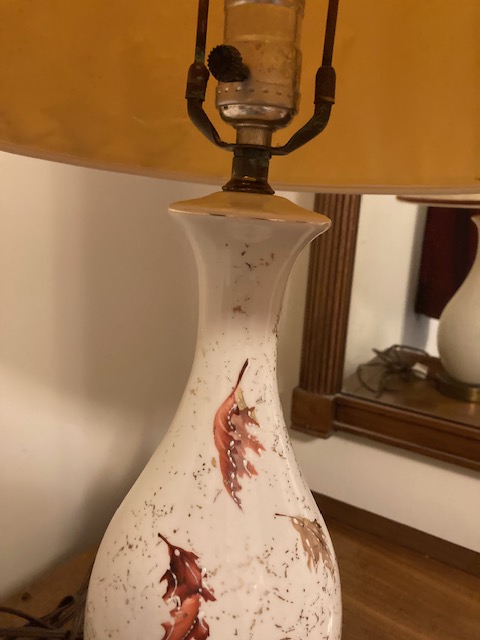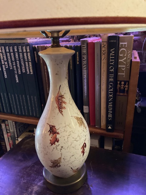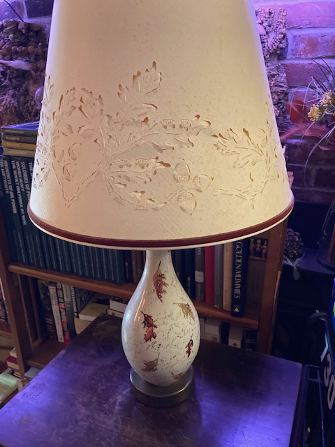 This is a lovely leaf pattern ceramic lamp with a cut & pierced shade also in a leaf motif.