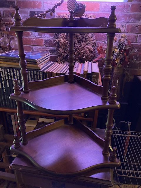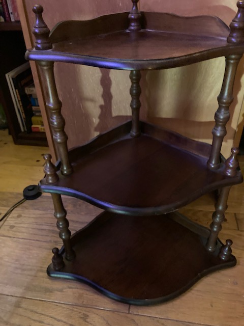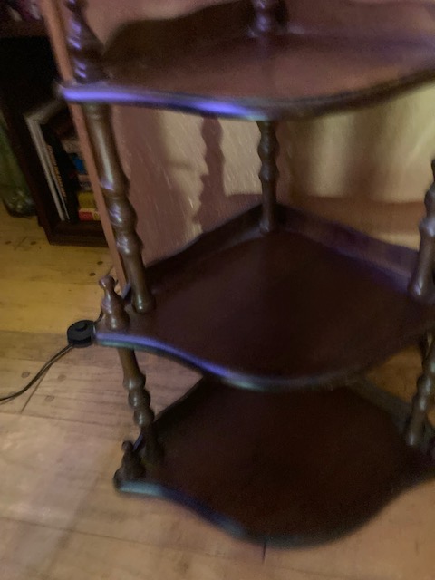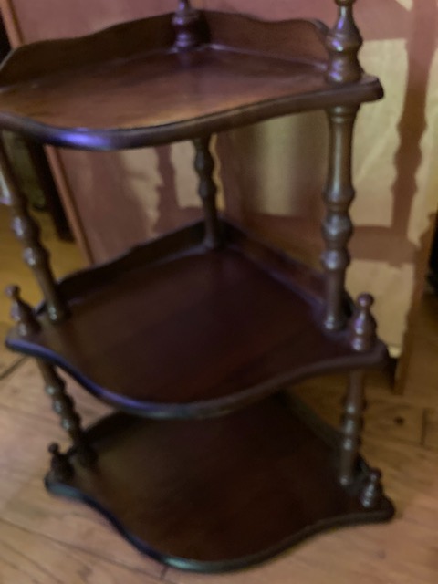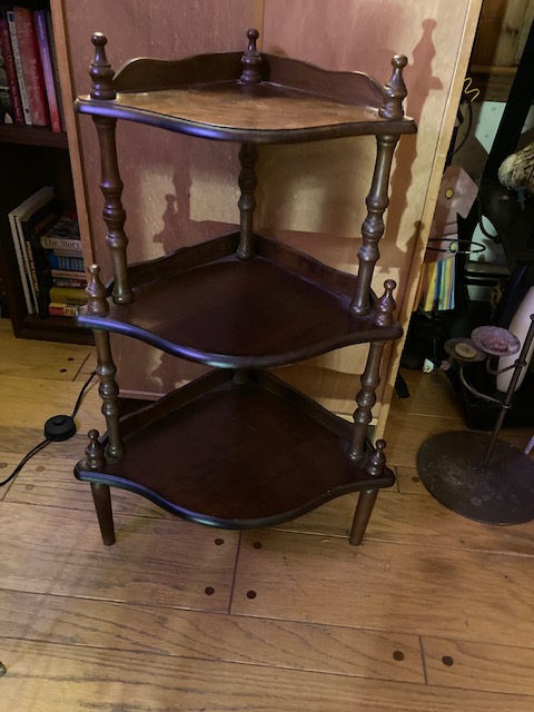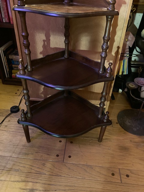 2 Responses to Lovely Little Antique Mahogany (?) 3 Tier Corner Shelf