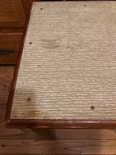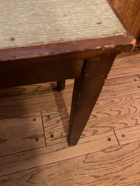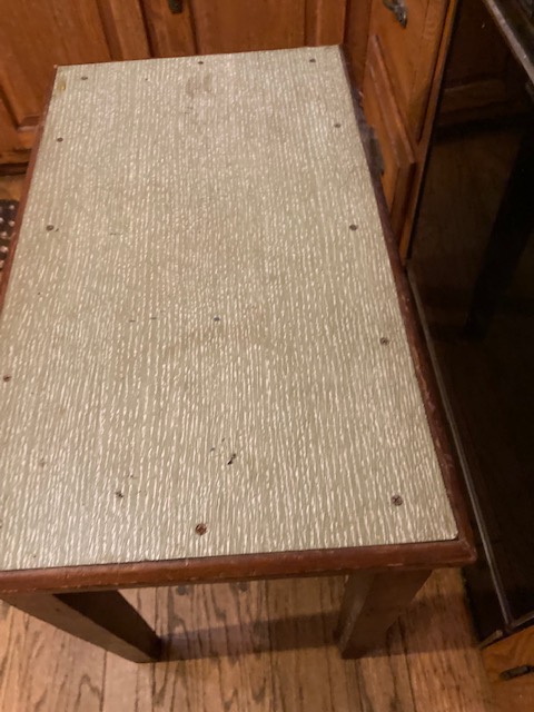 I’m selling this old table for someone else, and it’s been sitting in my small kitchen for a bit… Even though it’s rather plain looking, it’s been wicked helpful as a catchall for heavy items, groceries and so forth.