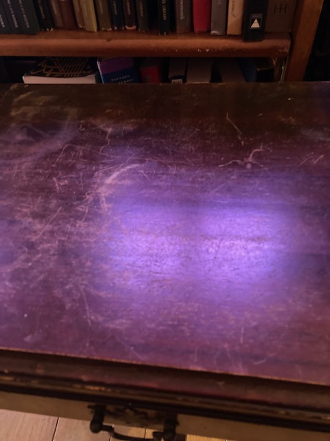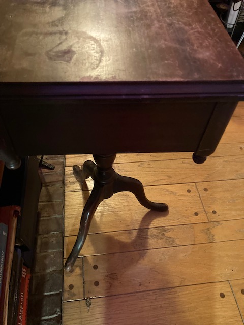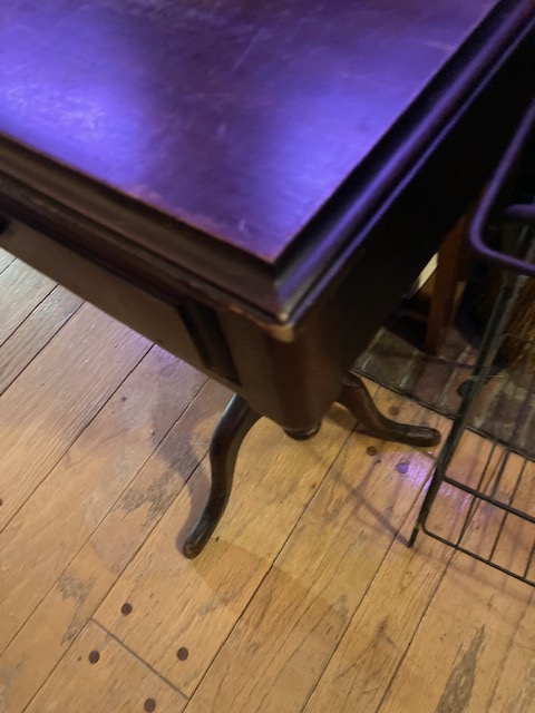 This is a nice little antique side table that would be fabulous if someone had the time and skill to put into refinishing it. It’s still quite lovely, and many would be happy with it, as is.