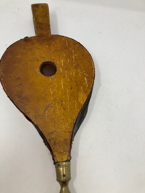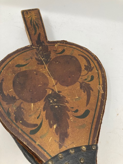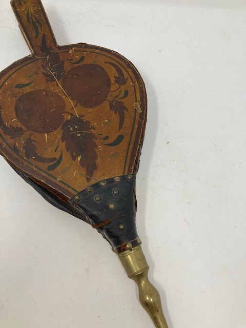 Condition: Aesthetically, the bellows is beautiful and a nice touch to any fireplace mantel. Structurally, I’m not sure how it would hold up to use due to age and the probable drying out of its parts. The metal finial is somewhat loose.