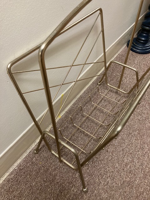 There should be a big old ashtray in the middle but that’s missing. There’s a notch on either side to hold a pipe. The cabinet is metal lined, so originally was a humidor for tobacco and cigars.
