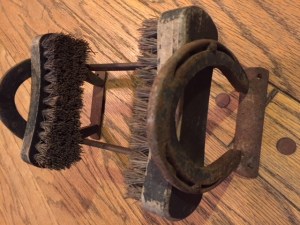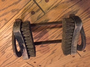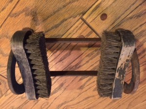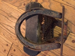 This antique shoe / boot mud scraper appears to have been hand-made. It’s solid and nifty; my late husband was pretty excited when I picked it up at an auction quite a while back. For some reason, it first landed in a corner under some other inventory where it couldn’t be seen very well, then when I downsized the shop, it ended up in a box and was completely forgotten. But now, it’s out and ready for its new home.