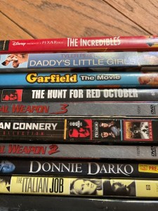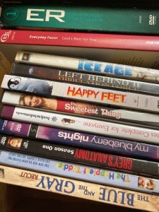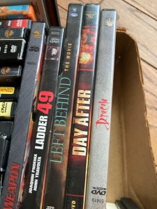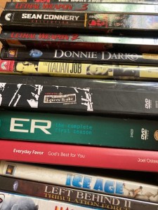 Here are nearly 3 dozen movies and television series (for both kids and adults) on DVD that we collected back when we had the shop. I don’t know what kind of condition they’re in, and haven’t checked each individual case to make certain there’s a DVD in each, but the ones I did check are all intact.
