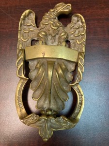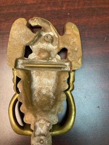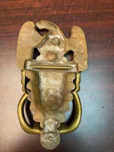 This solid brass eagle door knocker weights a good 2 pounds or so. It would be a great addition to your front door!