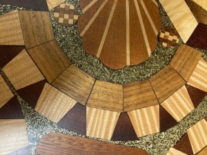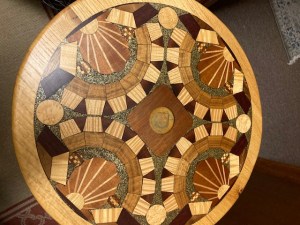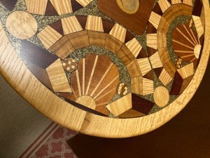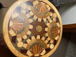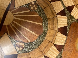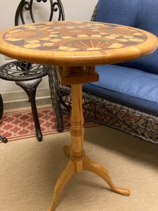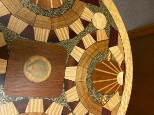 This table, crafted by Farley Assets of Thomaston (ME) is true craftsmanship. Look at the detail! It even has a seashell sealed in the center.