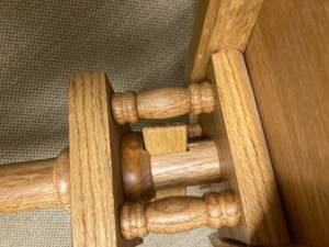 Condition: The desk chair has a caster that’s loose (that means it falls out if the chair isn’t squarely set on the floor). The desk has a drawer that sticks. Both are probably easy fixes by someone who’s even a trifle handy, which I am not.