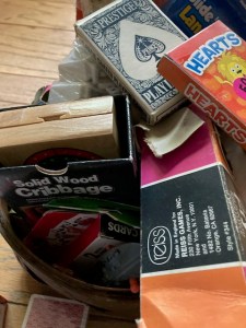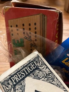 I have a small pile of playing cards, kids card games (Old Maids, etc) and a couple of cribbage boards to give away. There’s nothing really exciting here, but I thought maybe someone could use them; otherwise, I’ll just throw them out.